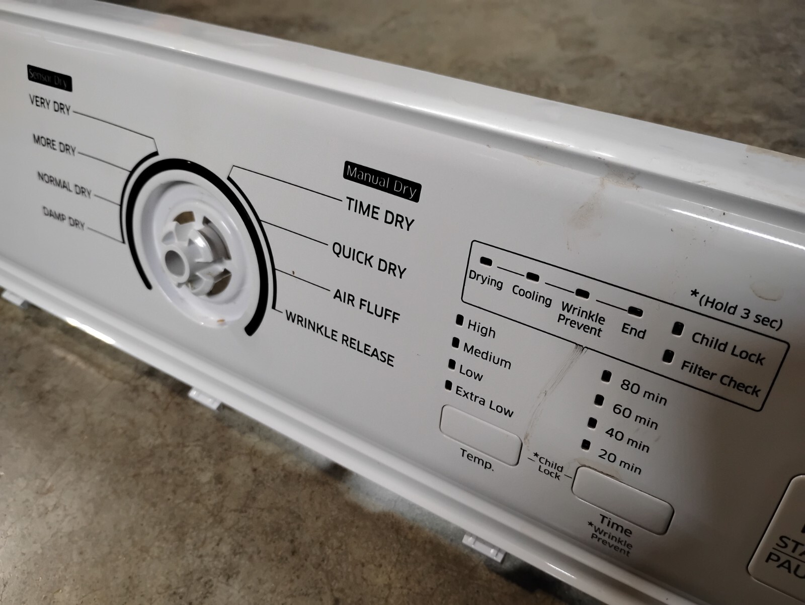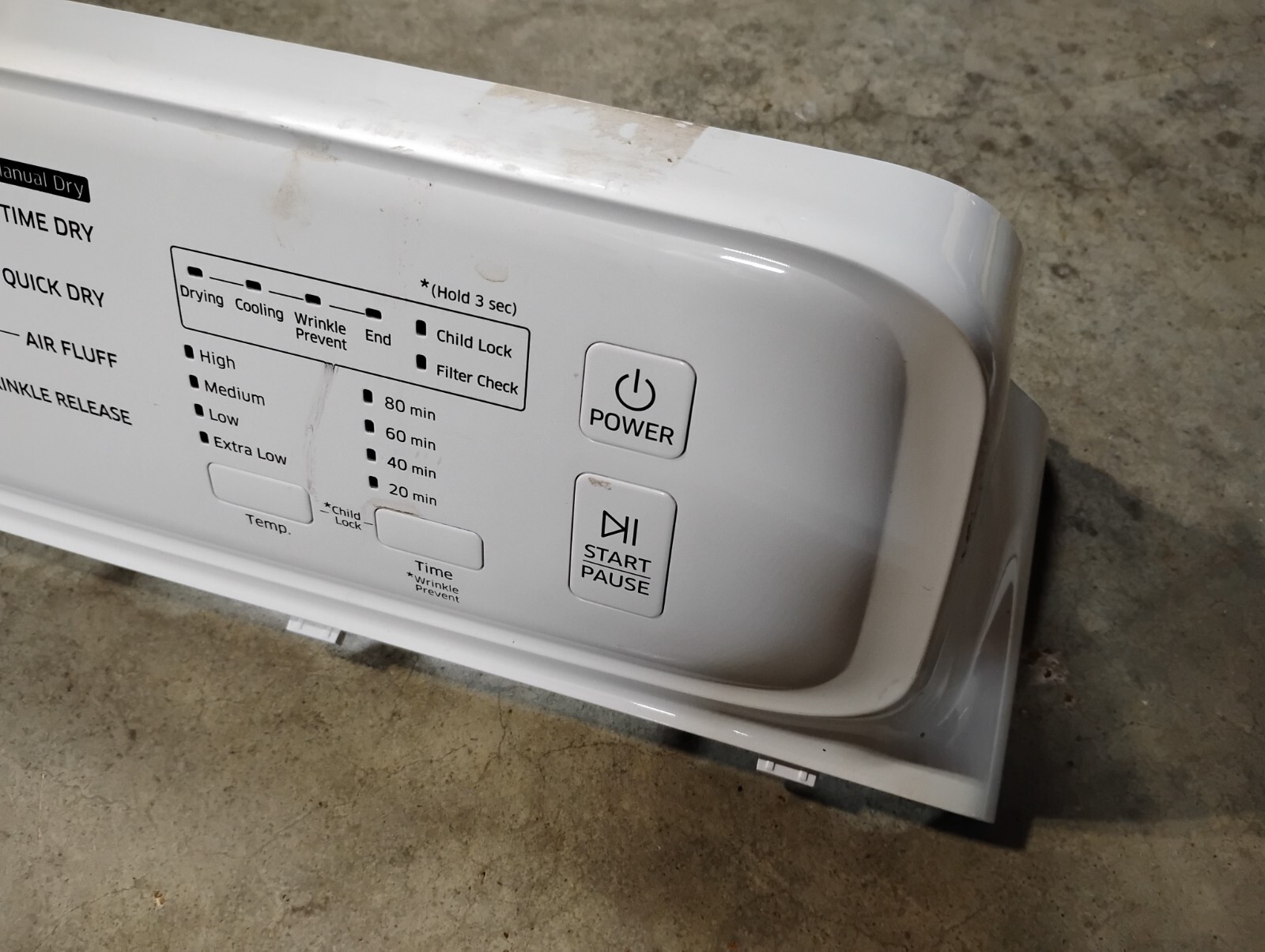 Samsung Dryer Control Panel, (Cover only) #DC64-03224A002, DC64-08226A002 DV800J for model # DV40J3000EW/A